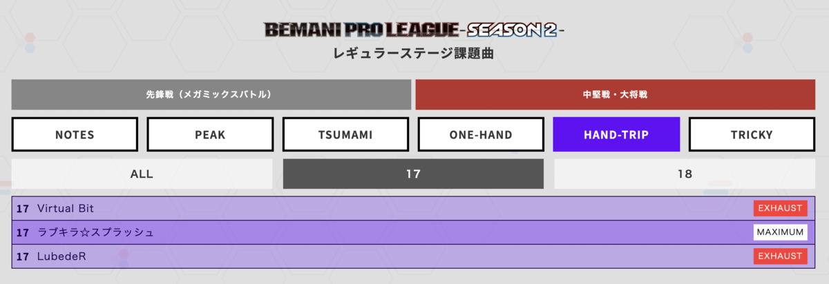レギュラーシーズンはLv.17とLv.18が対象となりますので、現在はその範囲の楽曲リストが公開されています。