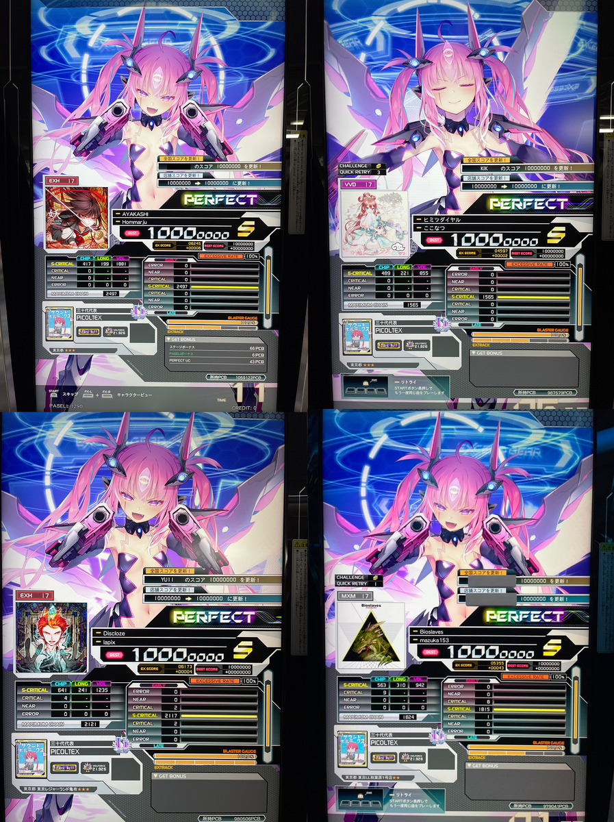 この曲はなんと言ってもまず最初の螺旋とFXチップの同時押し。うまく行かないとそこで大量にCRICITALを吐いてしまうので心配でしたが、全S-CRITICALで抜けてホッとしました。