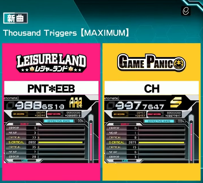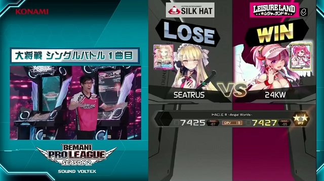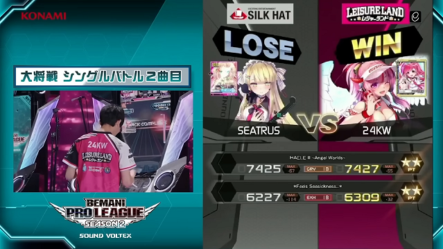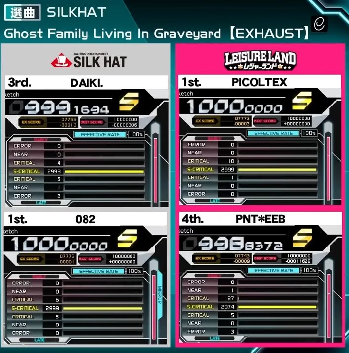 また、この楽曲は途中に3回ブレイクがあるのですが、いずれのタイミングでも「1点差で先行している」という状況になっており、曲中ずっとドキドキしておりました。3回目のブレイクまでS-PUCペースでしたので、正直もう少し差がついていると思ったのですが・・・。
