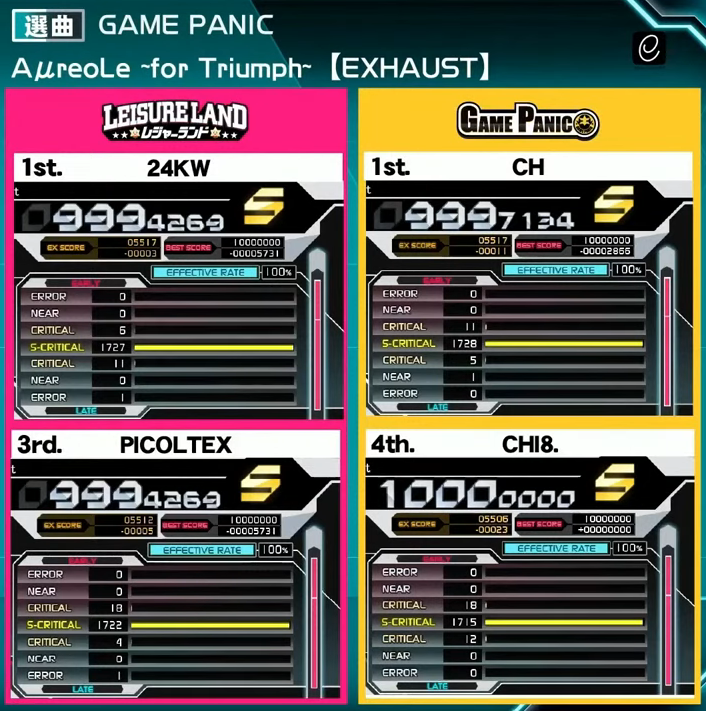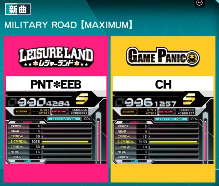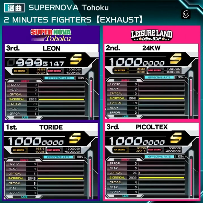 これはなかなか対策が大変ですね・・・!場合によってはMAXIMUM譜面に慣れていたとしても面食らってしまう配置があるEXHAUST譜面が紛れていたりしますので、選手はそのあたりの対策もきっちりとやっておかなければなりません。