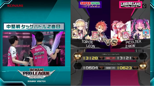 中堅戦はLv.18のPEAKを経験している24KW選手と、PICOLTEXに比べ手広く課題曲をカバーできるPNT*EEB選手。