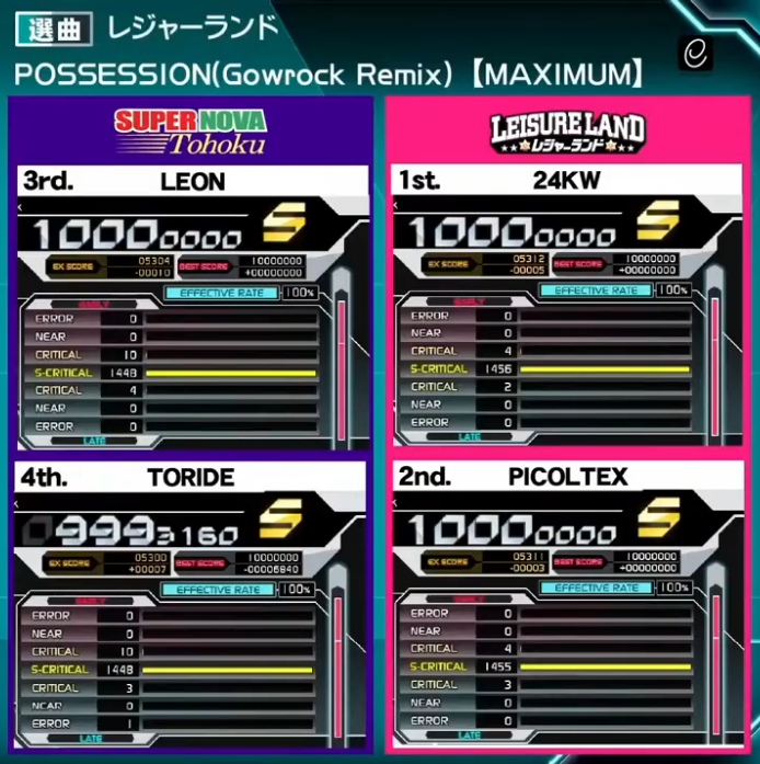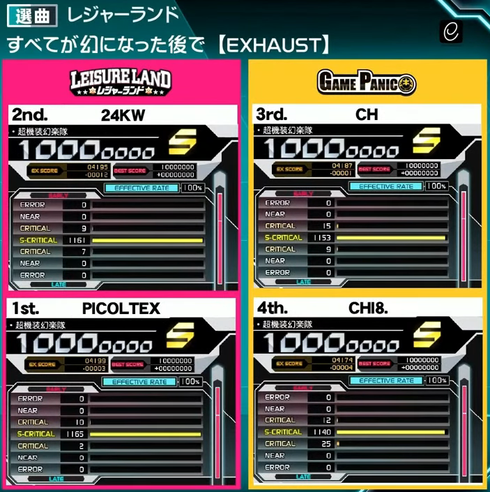 正直KAINARU選手がここまで仕上がっているのは想定外で、特に*Feels Seasickness...*をCRITICAL1個で通したのには大変びっくりしました。お見事でした。