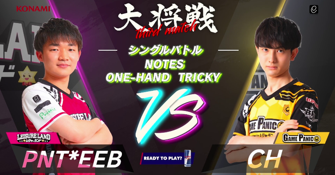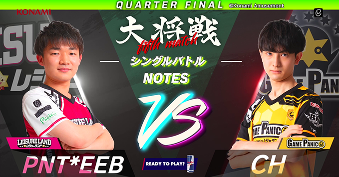 GAME PANICからはCH選手が大将で出てくるだろうと考えられましたが、CH選手のプレイした初見楽曲はここまで全勝、ましてやQFでLv.19の楽曲が登場することが予想される状況で、初見楽曲でポイントを取りに行くのはかなり厳しいだろうと考えていました。