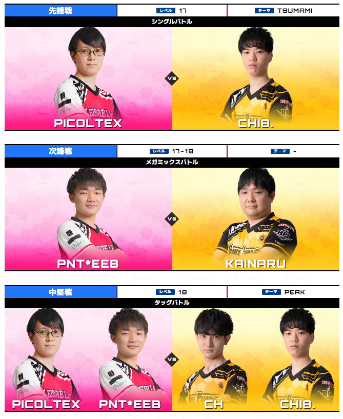 なので、「もしそこまでに上手くいかなかったとしても、逆転の可能性を残しておける」ように、副将PICOLTEX、大将24KW選手という配置にしました。
