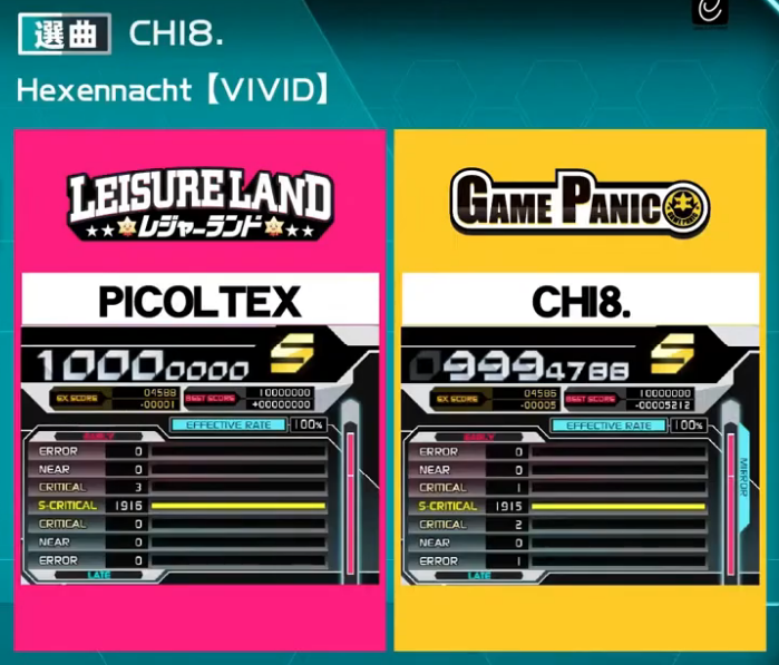 Lv.17のTSUMAMI楽曲については、何が飛んできてもMAX付近のスコアで争うことになります。心臓勝負には自信がありましたが、一番の懸念は「CHIPでERRORを出してしまい、5点失点してしまうこと」でした。